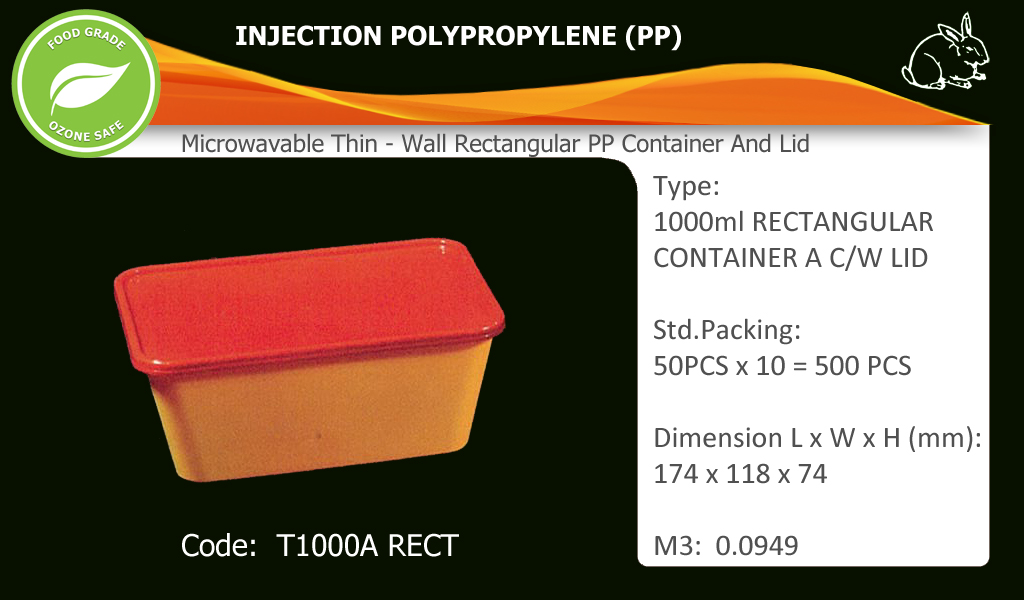 1000ml Rectangular Container w LidCode: T1000A RECT