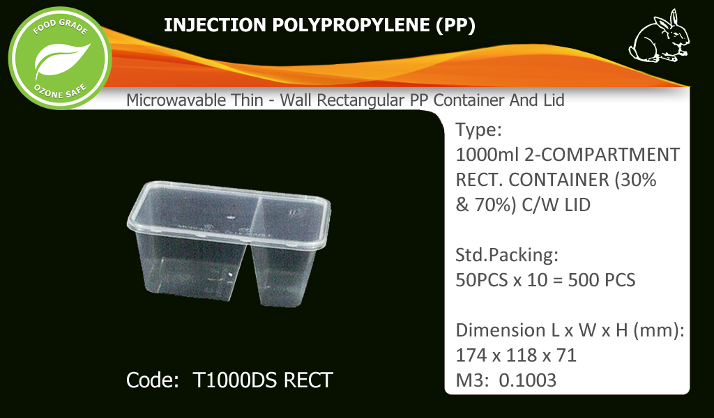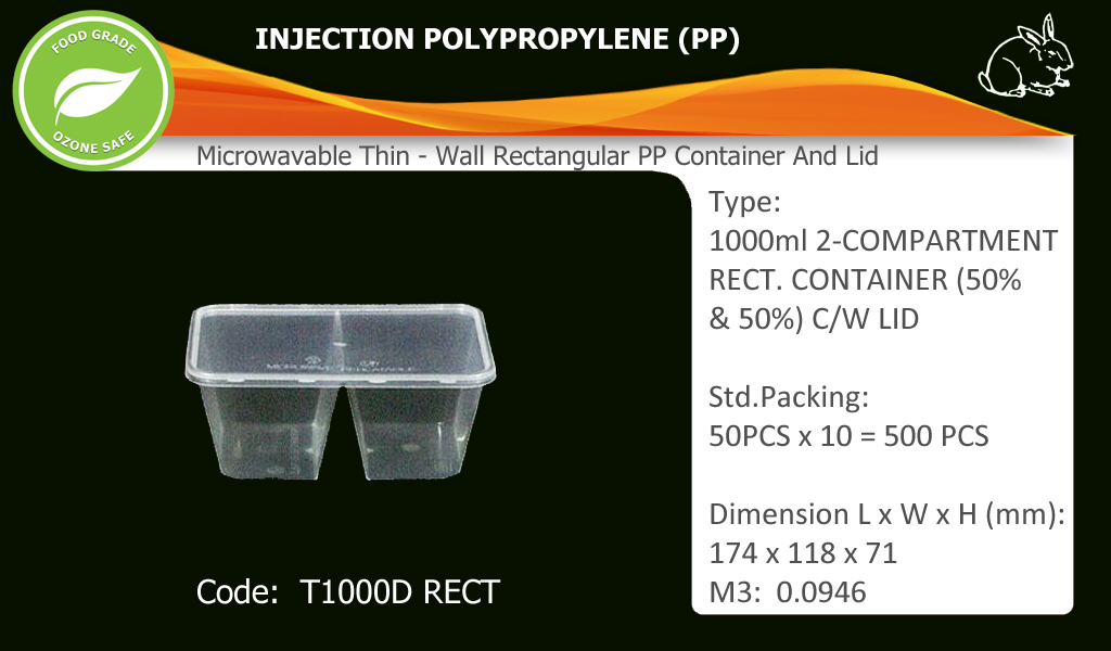 1000ml 2-Compartment Rect Container w LidCode: T1000DS RECT