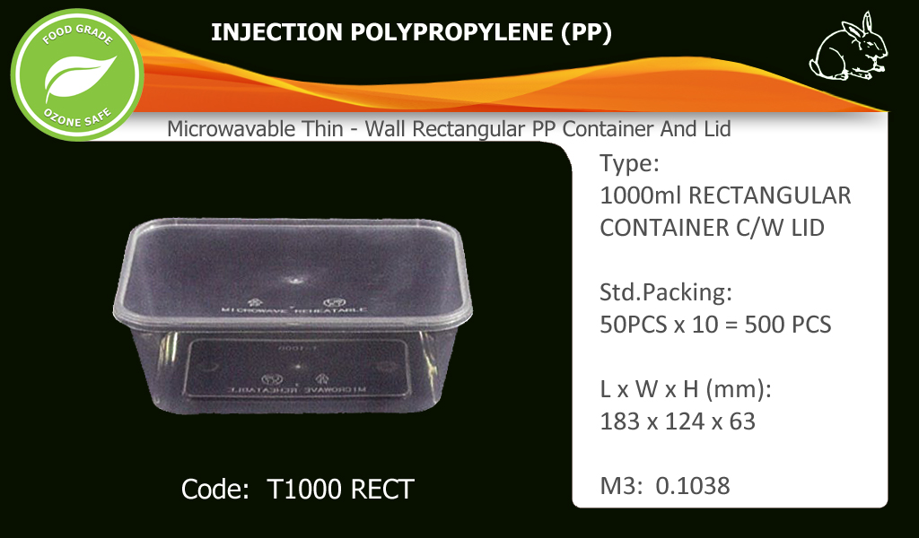 1000ml Rectangular Container c/w LidCode: T1000 RECT