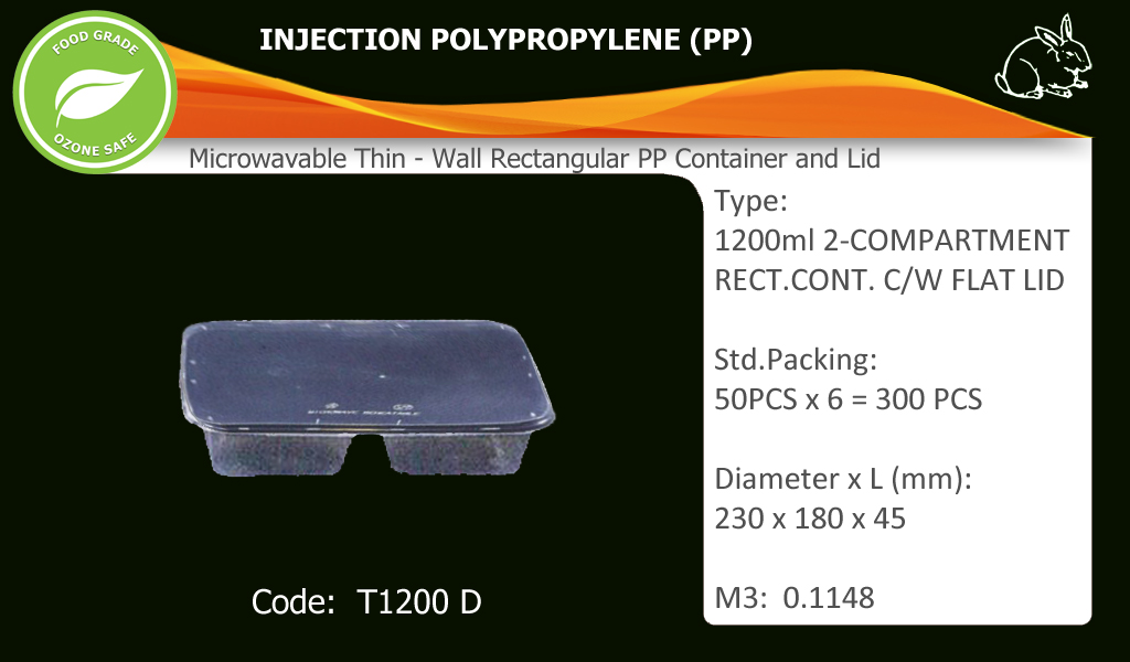 1200ml 2-Compartment Container w Flat LidCode: T1200 D