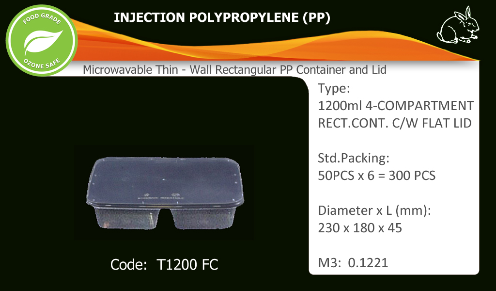 1200ml 4-Compartment Container w Flat LidCode: T1200 FC