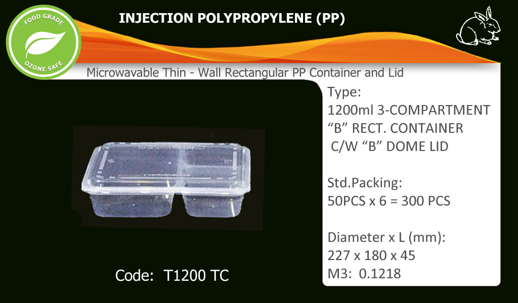 1220ml 3-Compartment Rect Container w LidCode: T1300 TC