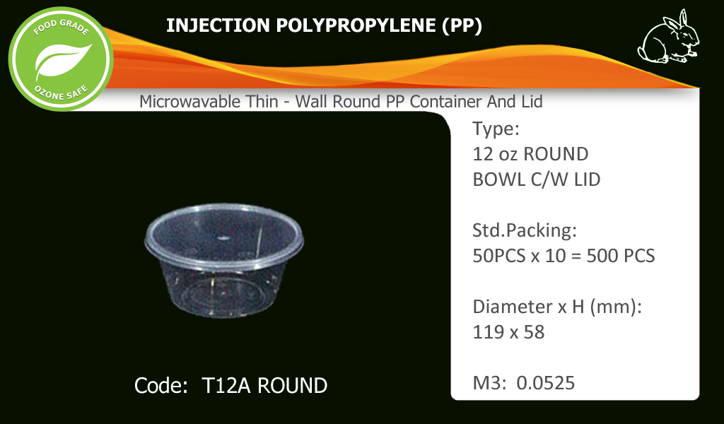 12oz Round Bowl c/w LidCode: T12A ROUND