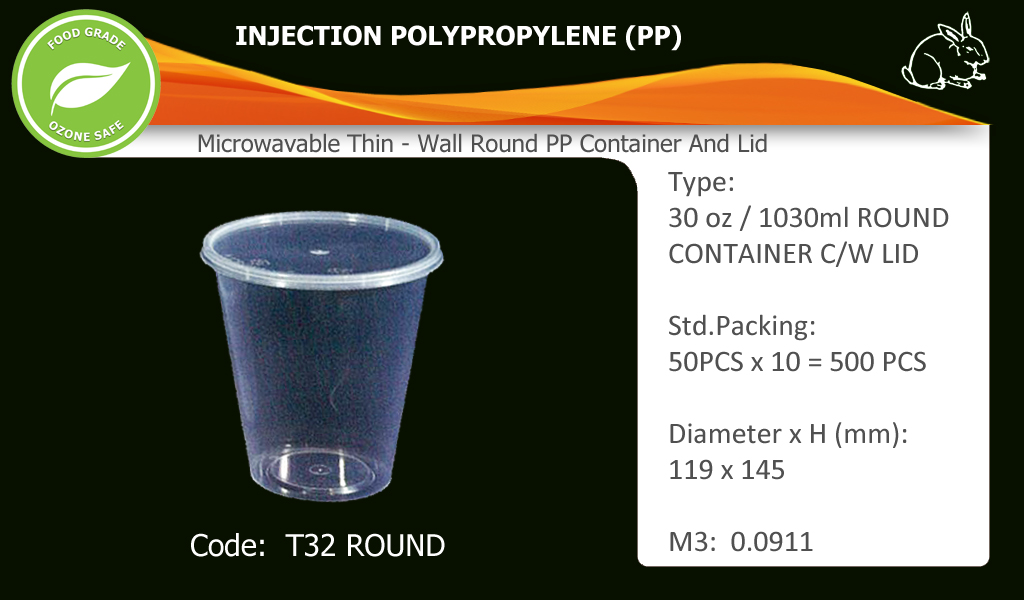 32oz Tamper Evident Round Container c/w LidCode: T32E ROUND