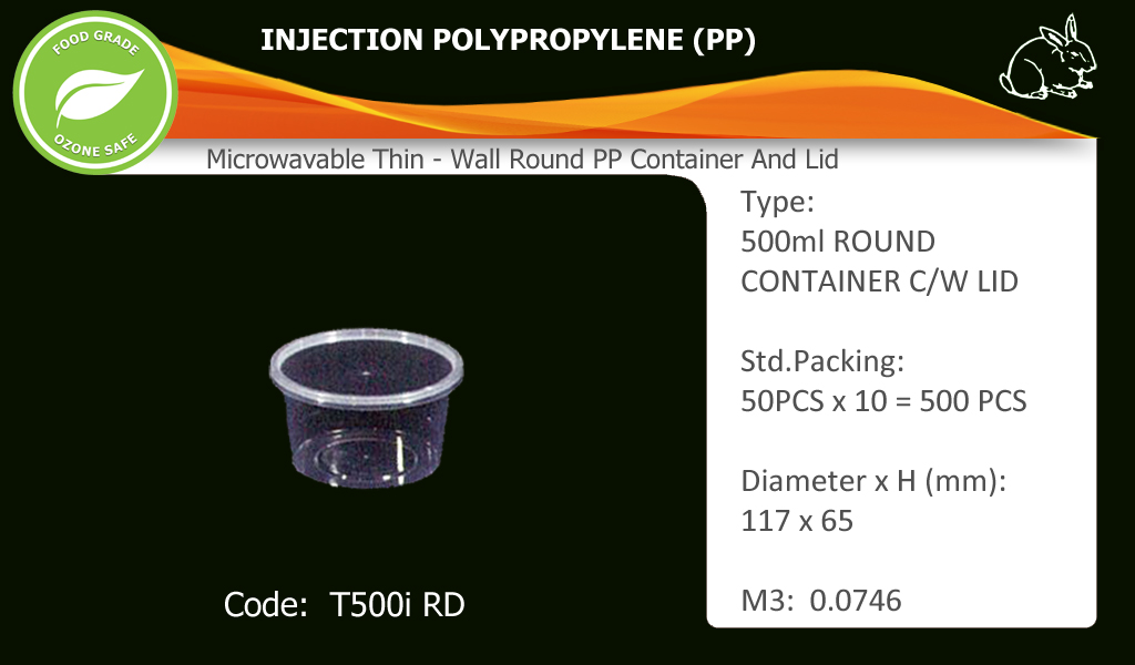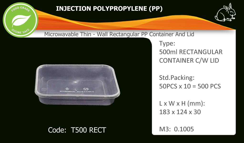 500ml Rectangular Container c/w LidCode: T500 RECT