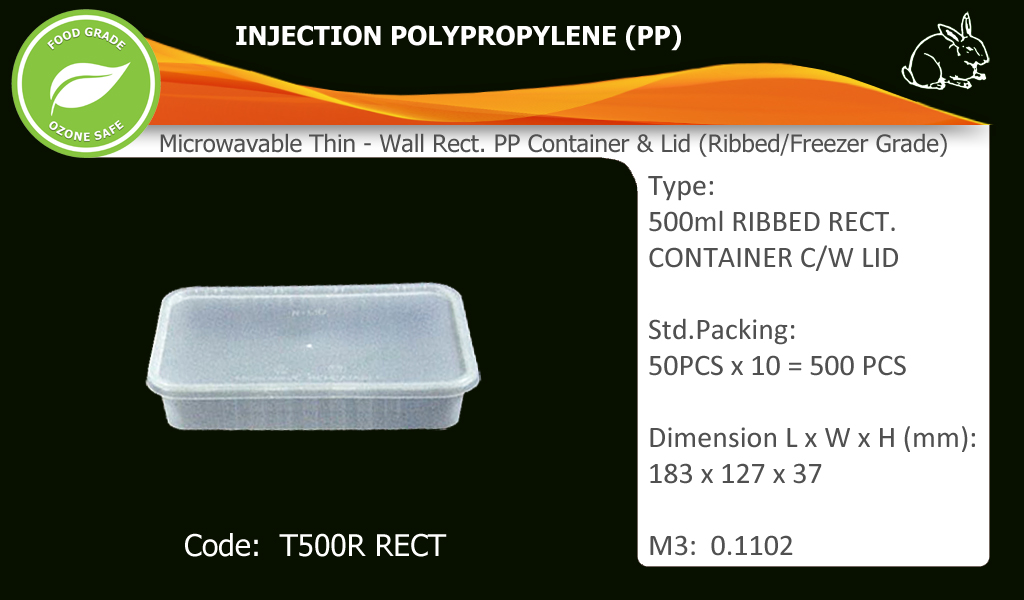 500ml Ribbed Rect. Cont. w LidCode: T500R RECT