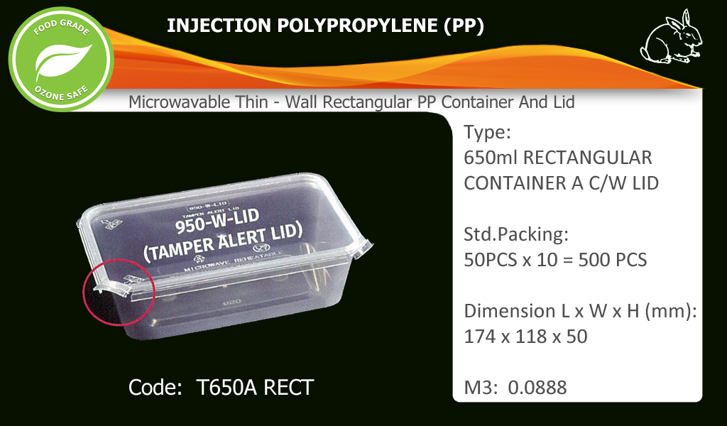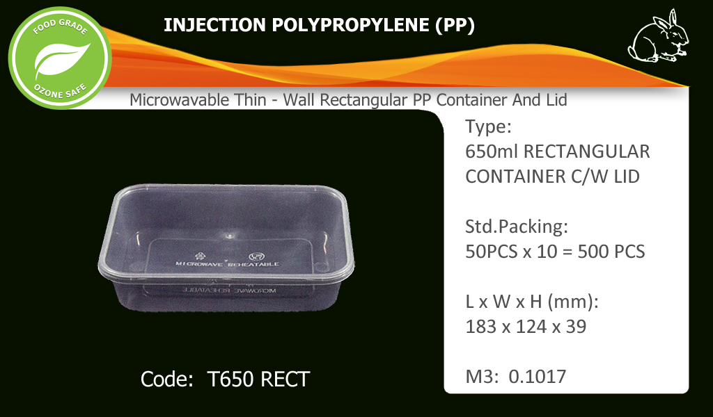 650ml Rectangular Container c/w LidCode: T650 RECT