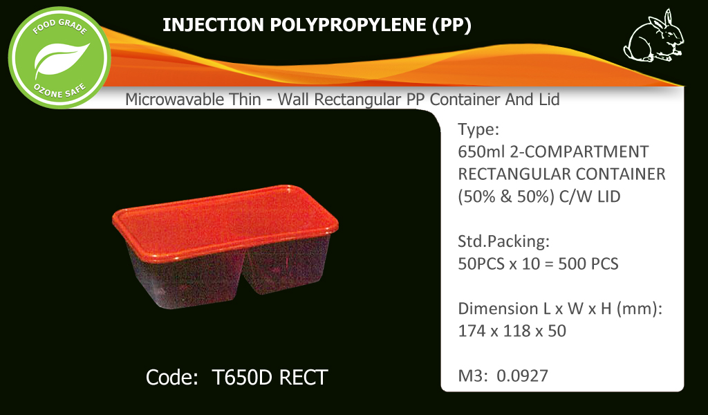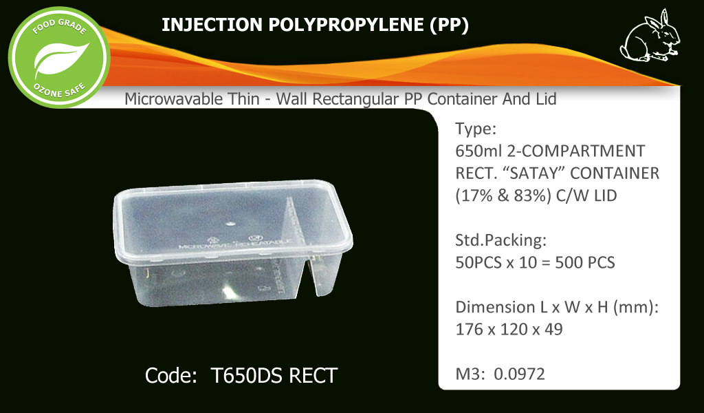 650ml 2-Compartment Satay Container w LidCode: T650DS RECT