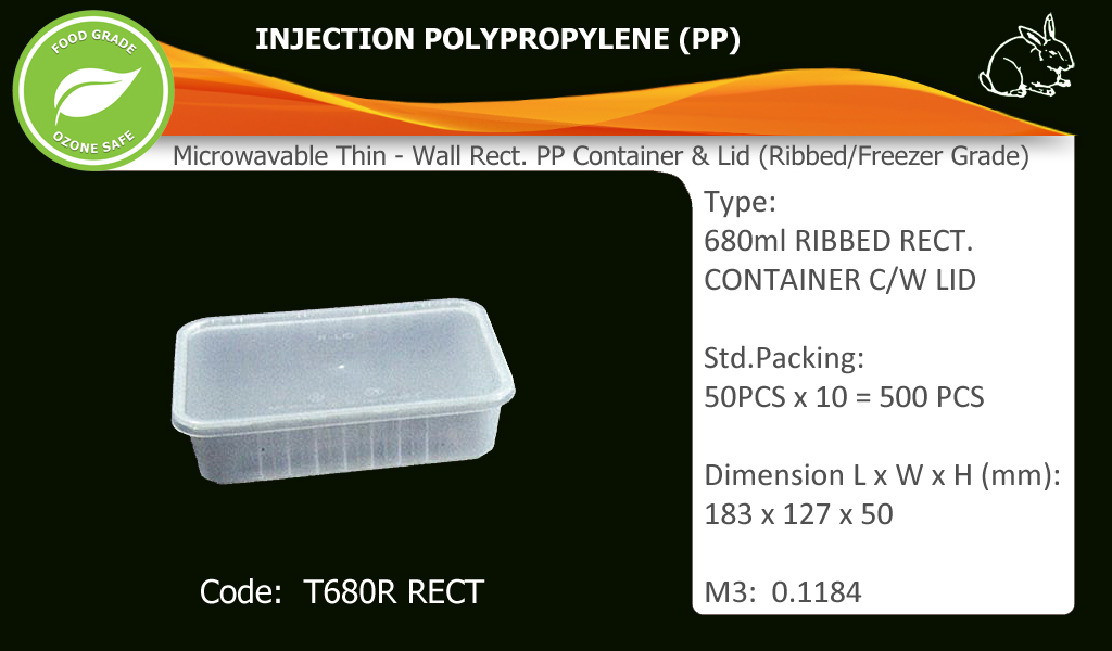 680ml Ribbed Rect. Cont. w LidCode: T680R RECT