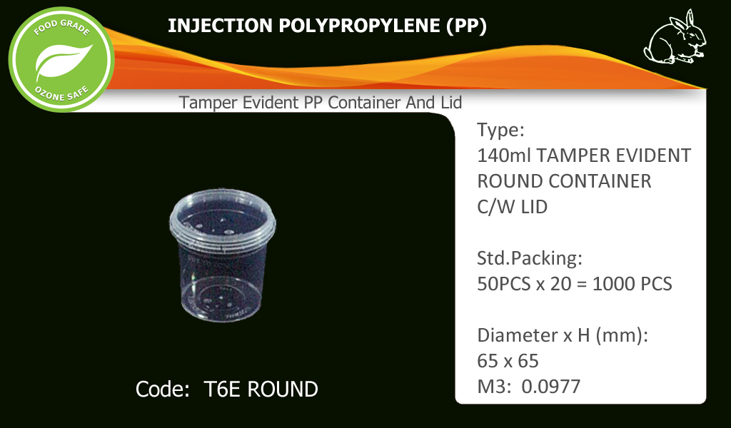 140ml Tamper Evident Round Container c/w LidCode: T6E ROUND