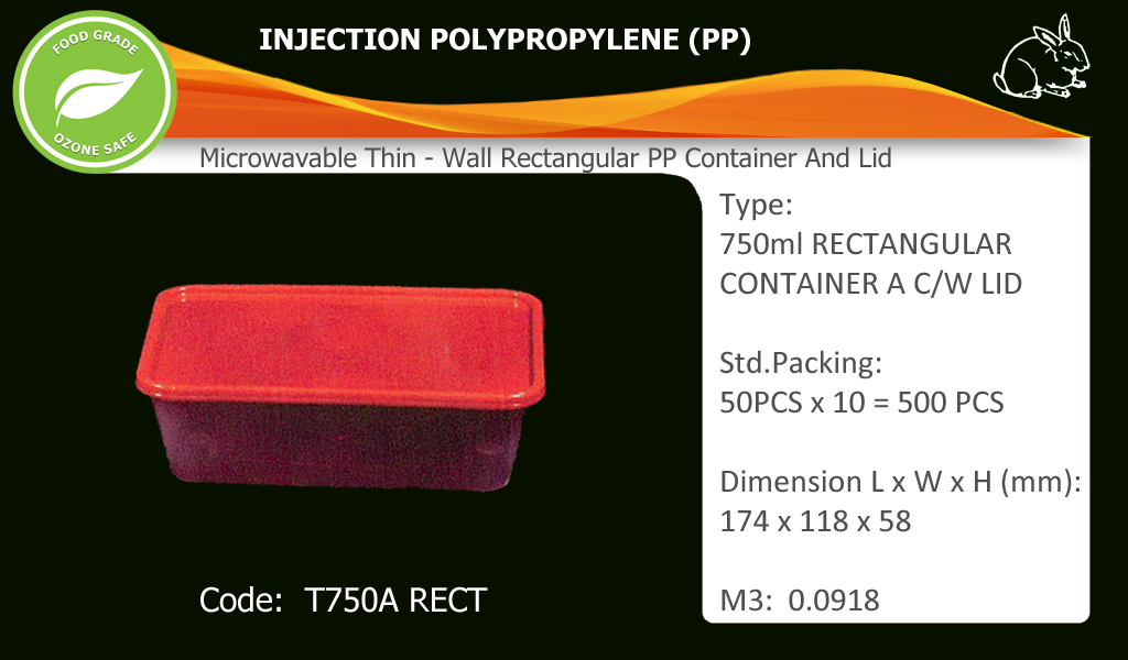 750ml Rectangular Container c/w LidCode: T750 RECT