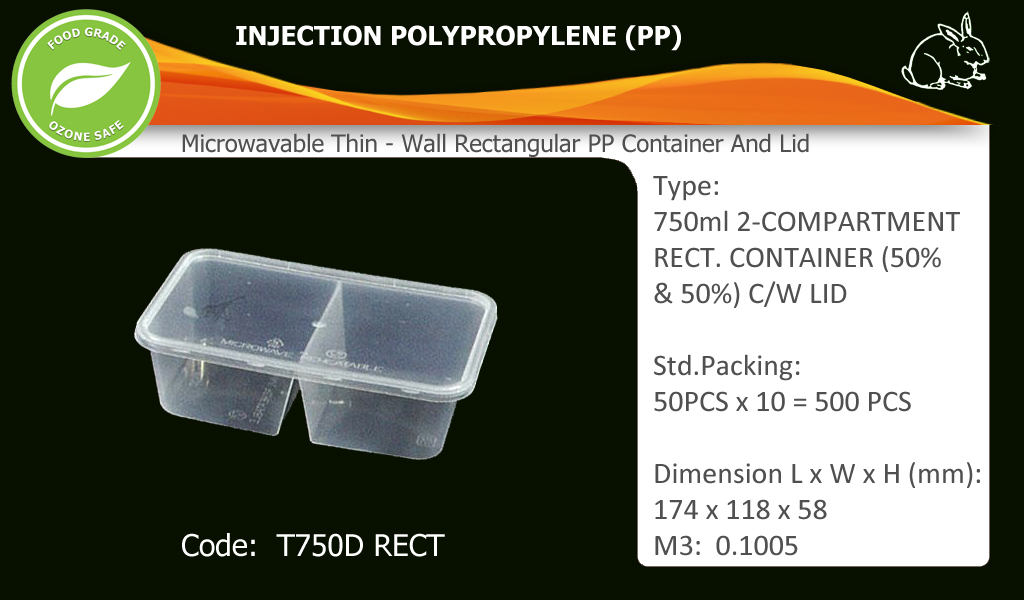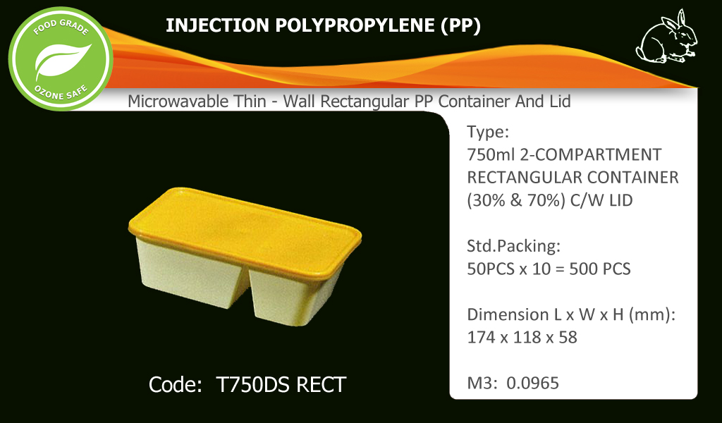 750ml 2-Compartment Rect Container w LidCode: T750DS RECT