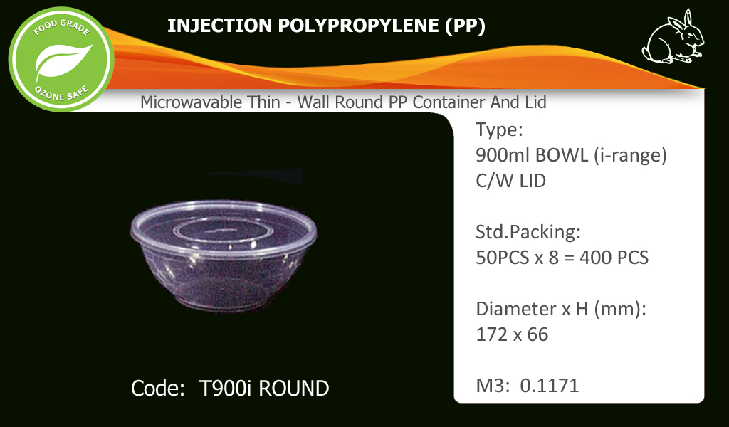 900ml Bowl i-range c/w LidCode: T900i ROUND