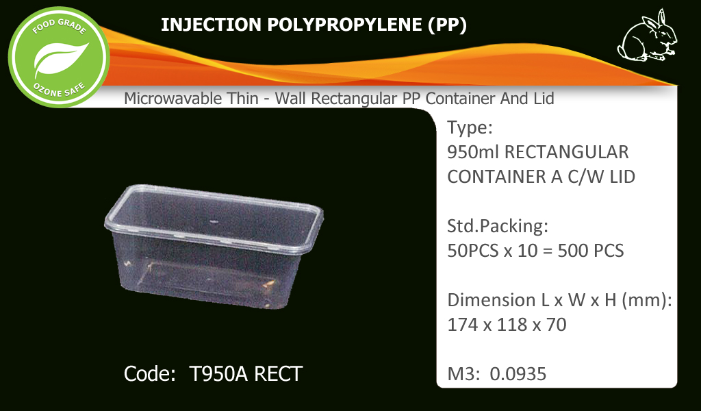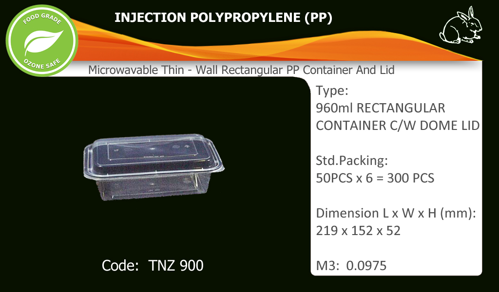 900ml Medium Wall Rect.Cont. c/w LidCode: MP900 RECT