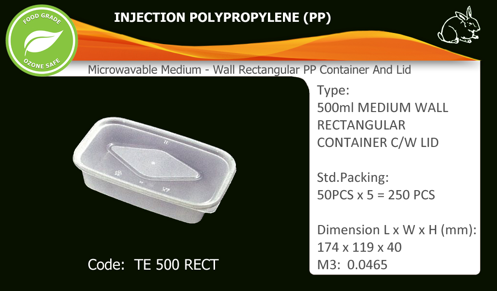 500ml Medium Wall Rect.Cont. c/w LidCode: TE 500 RECT