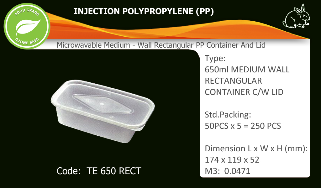 650ml Medium Wall Rect.Cont. c/w LidCode: TE 650 RECT