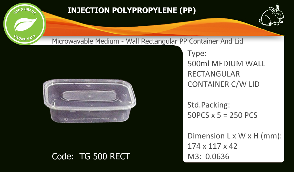 500ml Medium Wall Rect.Cont. c/w LidCode: TG 500 RECT