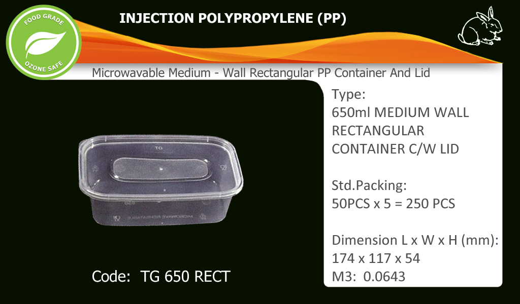 650ml Medium Wall Rect.Cont. c/w LidCode: TG 650 RECT