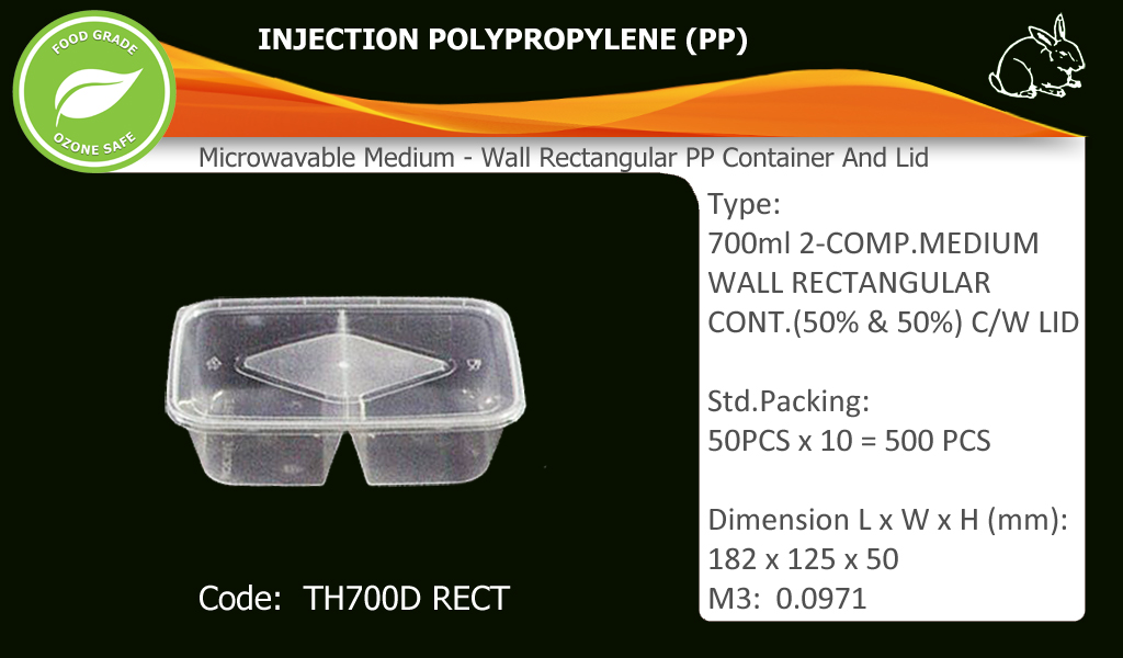 700ml 2-Compartment Medium Wall Rect.Cont. c/w LidCode: TH700D RECT
