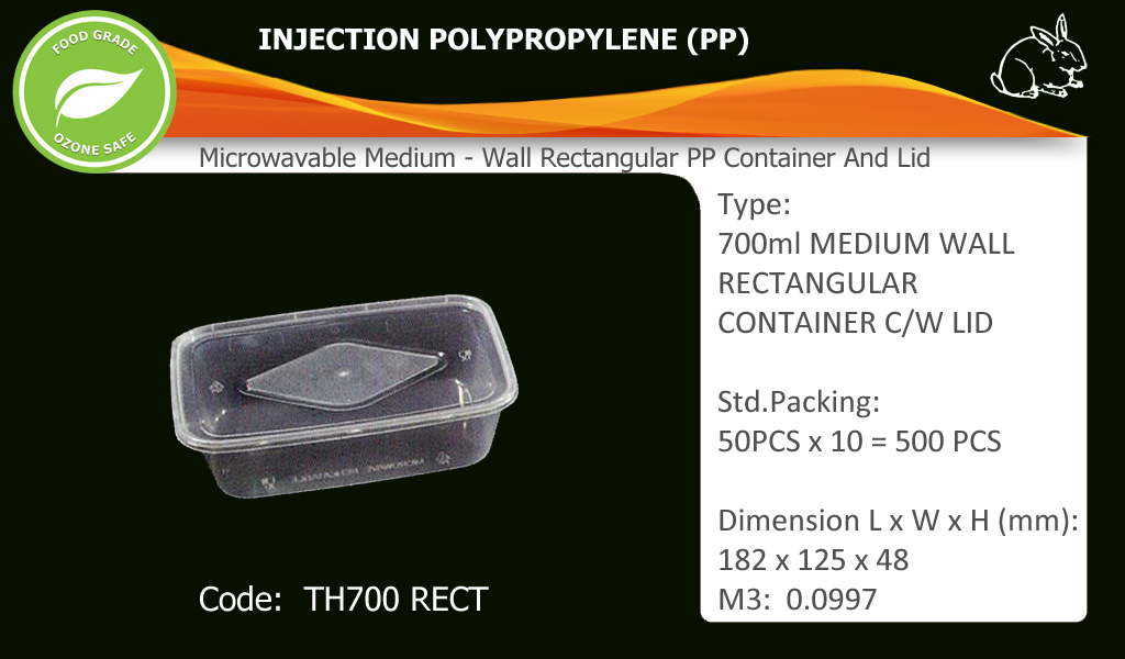 700ml Medium Wall Rect.Cont. c/w LidCode: TH700 RECT