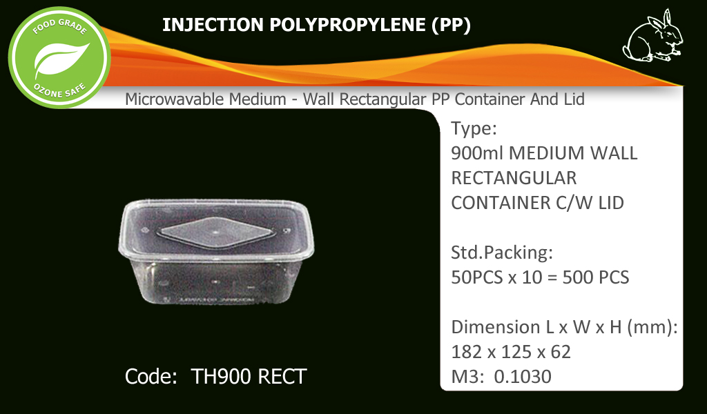 900ml Medium Wall Rect.Cont. c/w LidCode: TH900 RECT