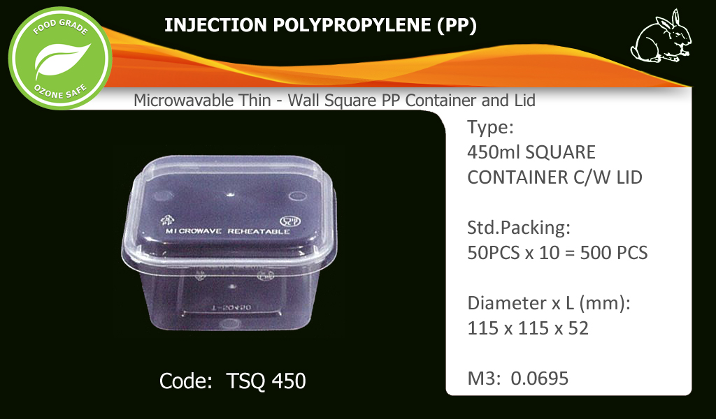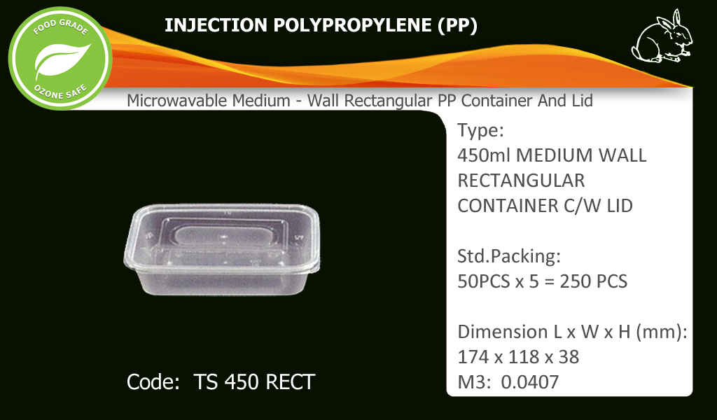 450ml Medium Wall Rect.Cont. c/w LidCode: TS 450 RECT