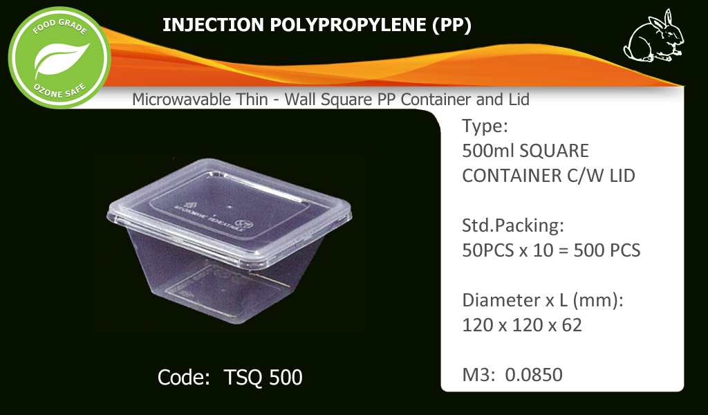 500ml Medium Wall Rect.Cont. c/w LidCode: TS 500 RECT