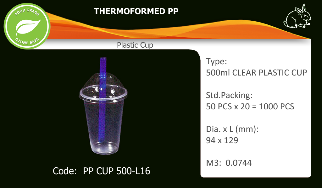 500ml Clear Plastic CupCode: PP CUP 500-L16