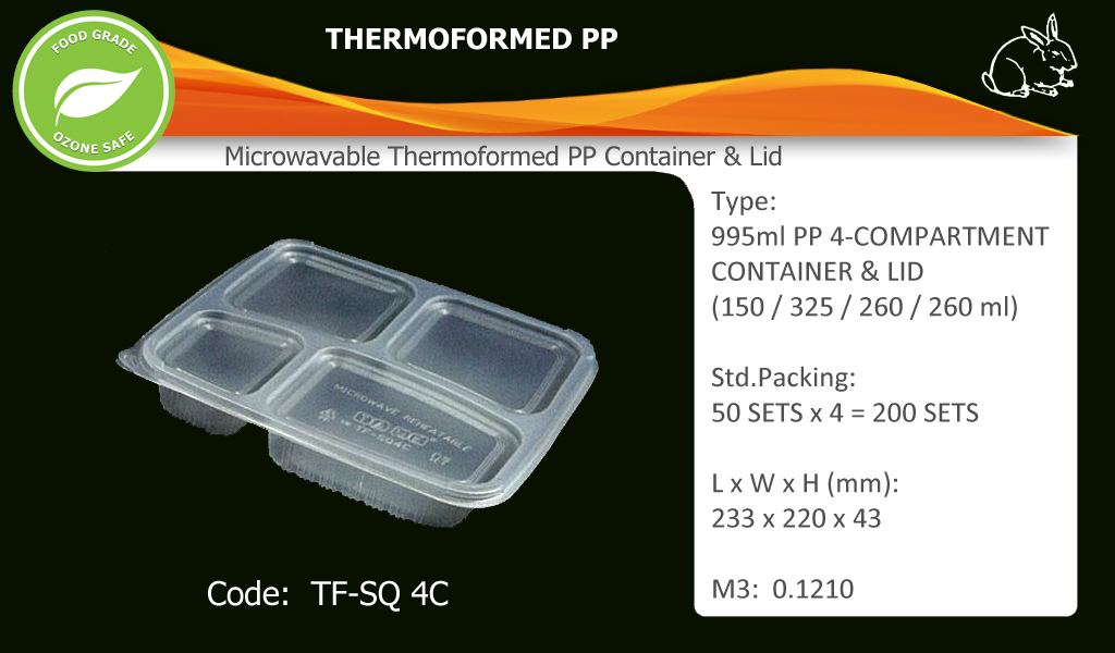 4-Compartment Container c/w LidCode: TF-SQ 4C