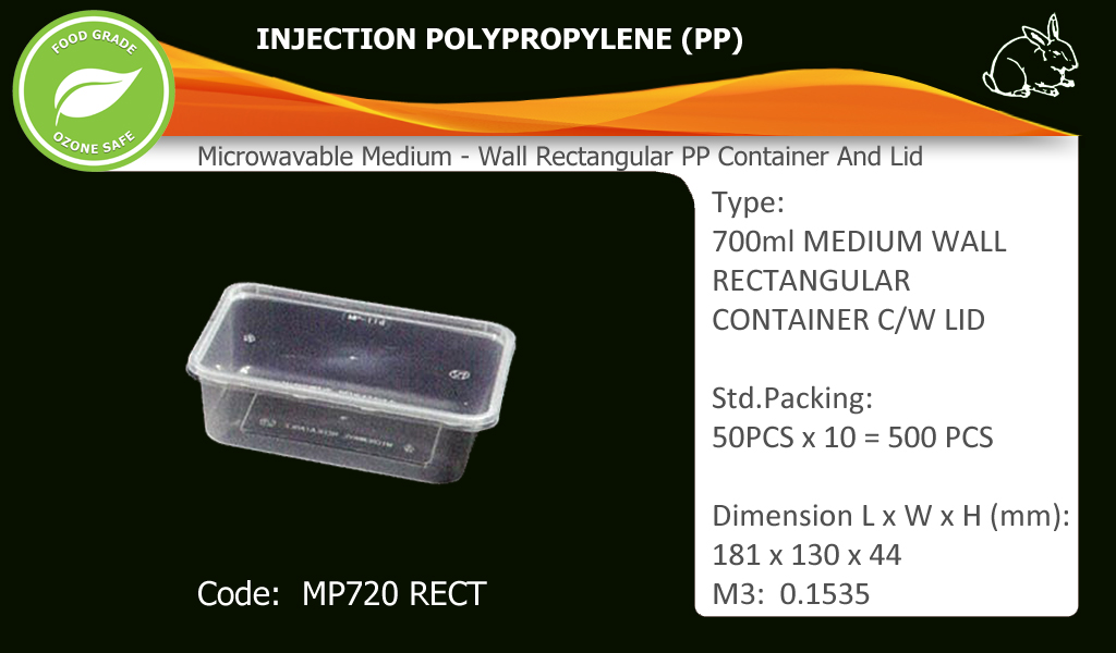 700ml Medium Wall Rect.Cont. c/w LidCode: MP720 RECT