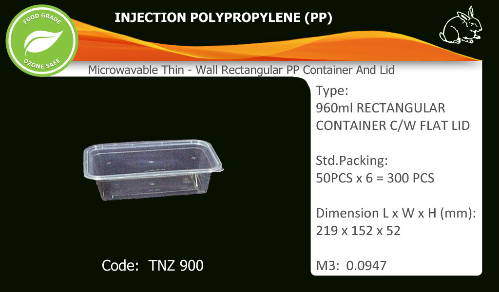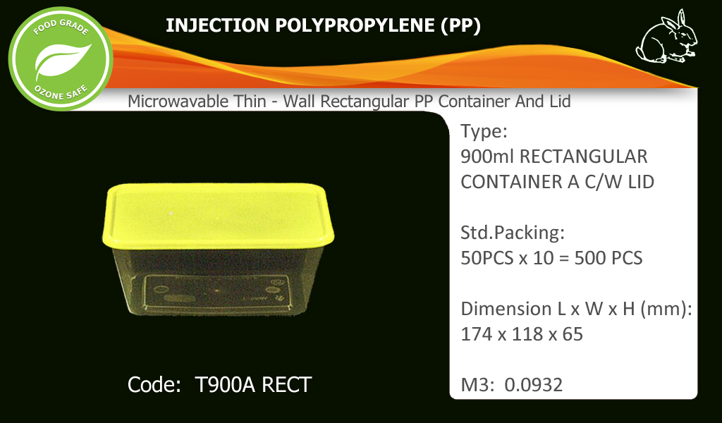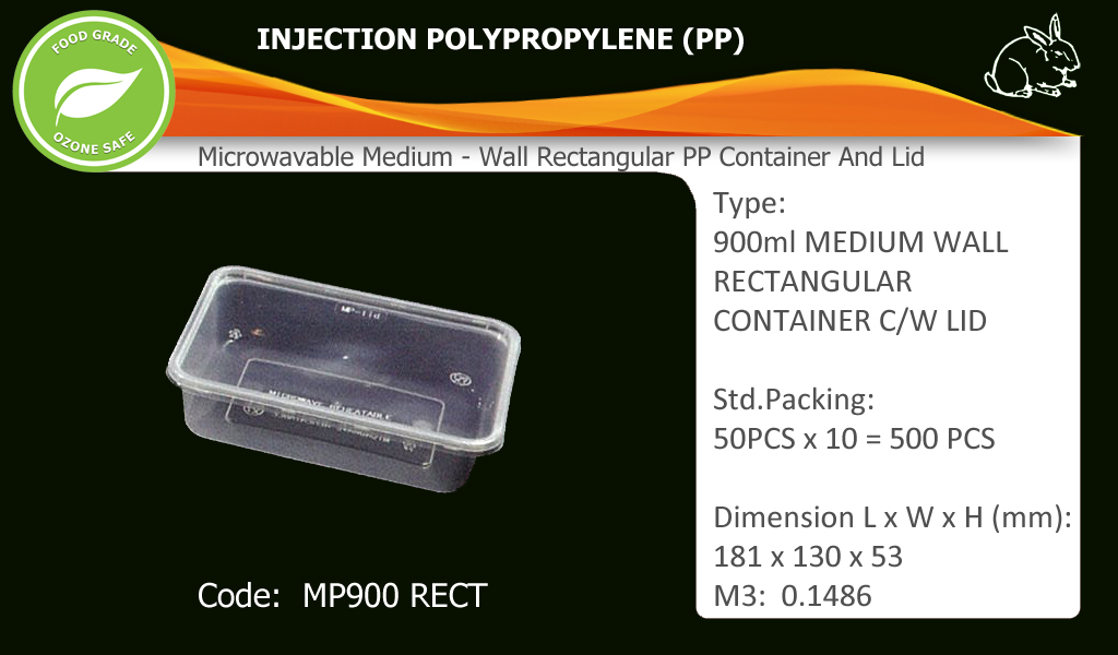 900ml Medium Wall Rect.Cont. c/w LidCode: MP900 RECT
