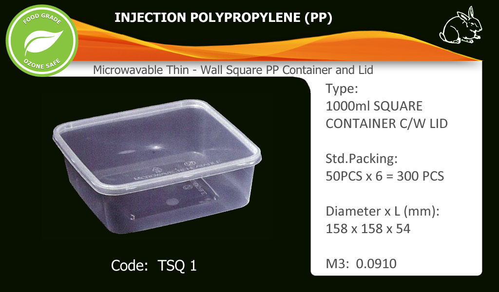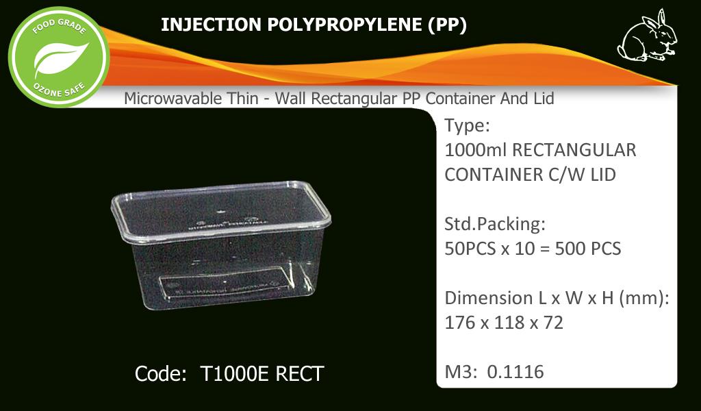 1000ml Rectangular Container c/w LidCode: T1000 RECT