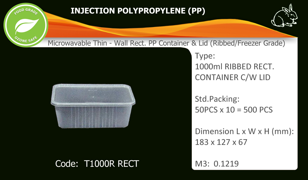 1000ml Ribbed Rect. Cont. w LidCode: T1000R RECT
