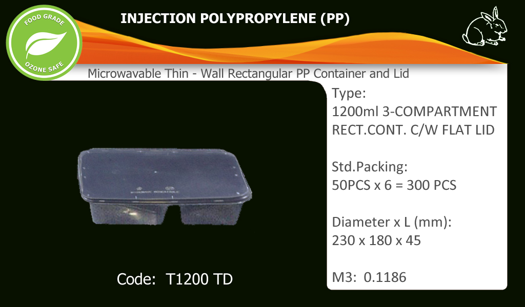 1200ml 3-Compartment Container w Flat LidCode: T1200 TD