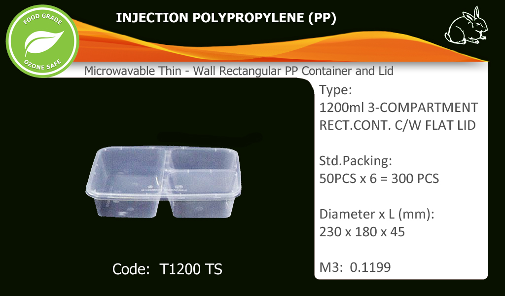 1200ml 3-Compartment Container w Flat LidCode: T1200 TS