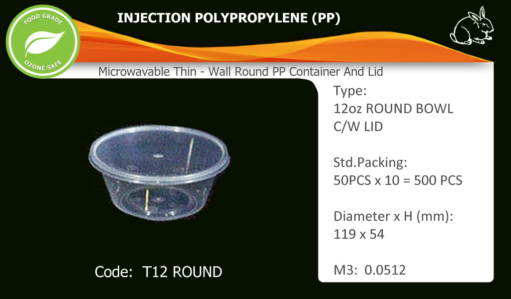 12oz Round Bowl c/w LidCode: T12 ROUND