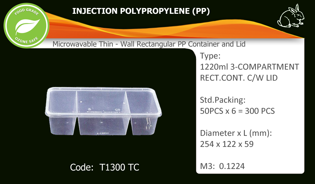 1220ml 3-Compartment Rect Container w LidCode: T1300 TC