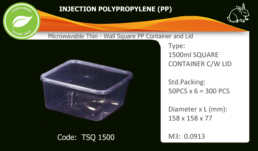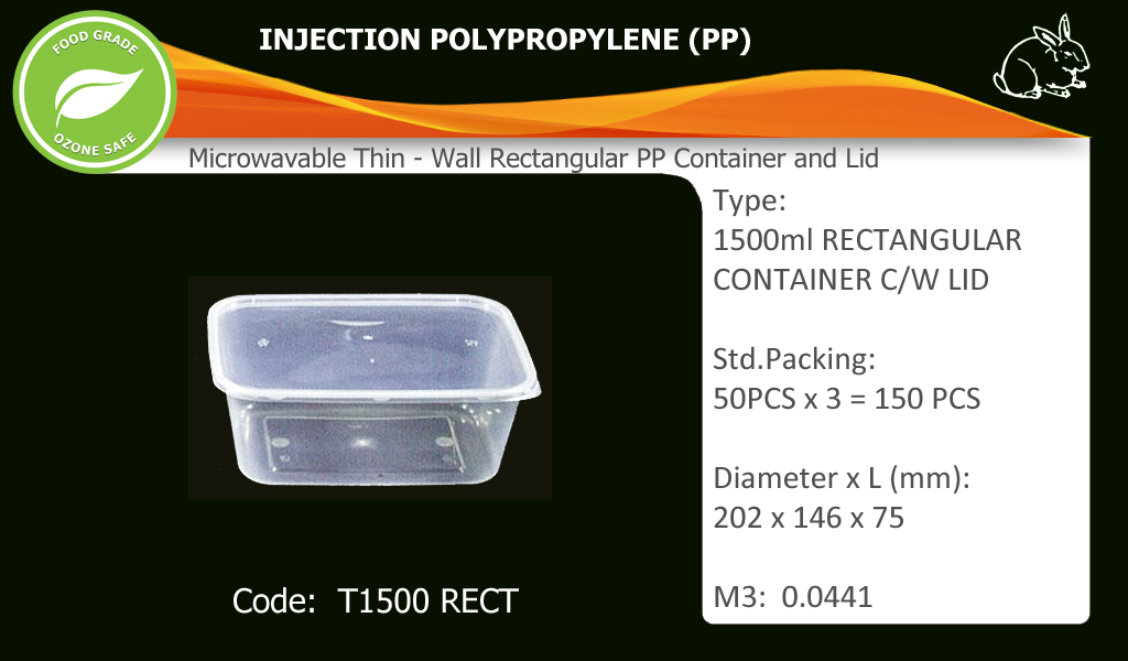 1500ml Rect Container c/w LidCode: T1500 RECT