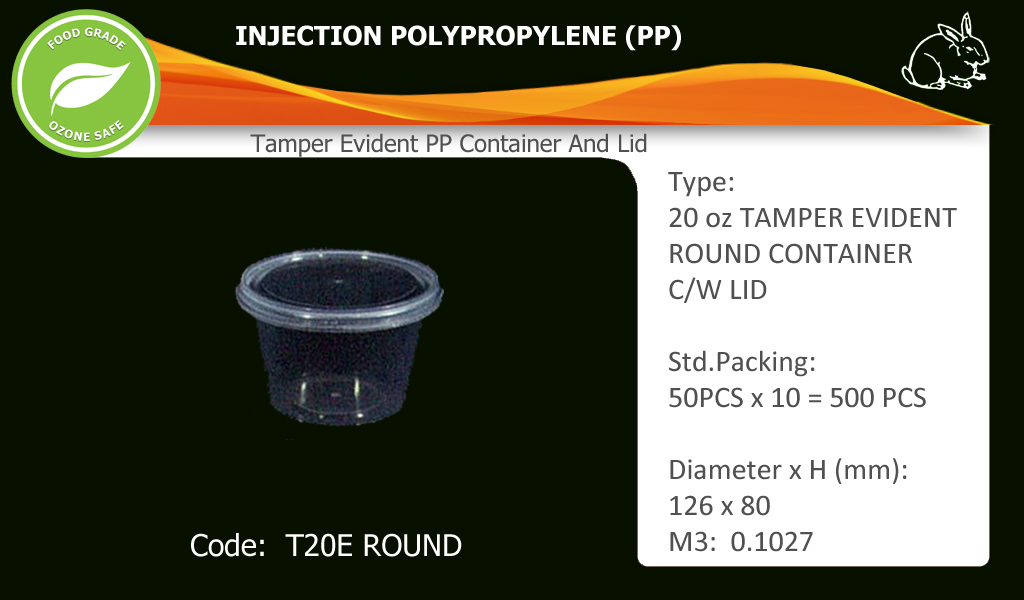 20oz Tamper Evident Round Container c/w LidCode: T20E ROUND