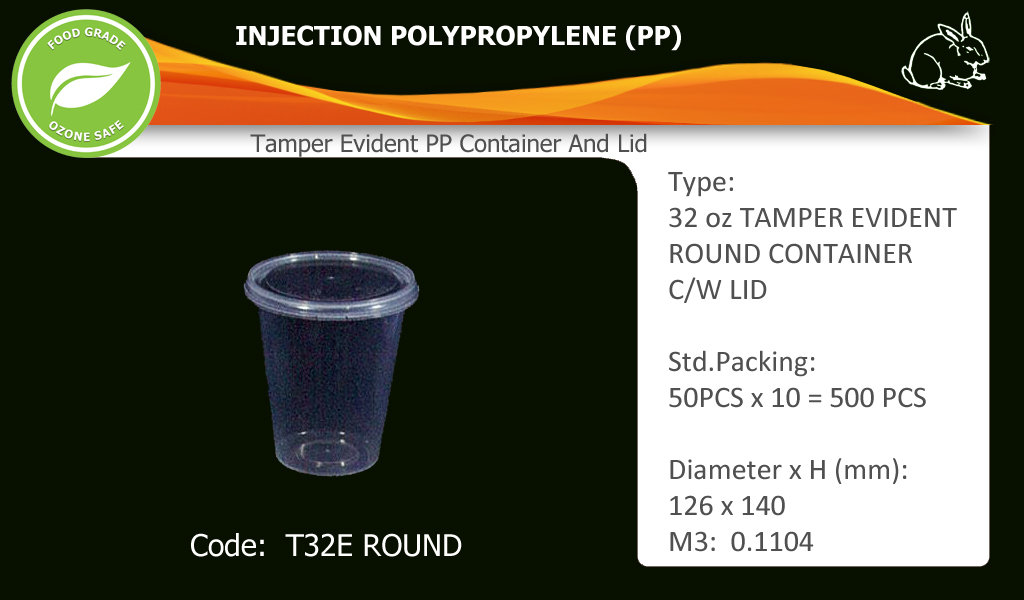 32oz Tamper Evident Round Container c/w LidCode: T32E ROUND