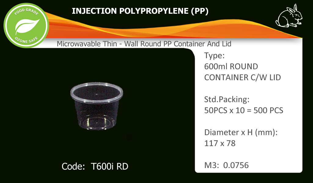 600ml Medium Wall Rect.Cont. c/w LidCode: TH600 RECT