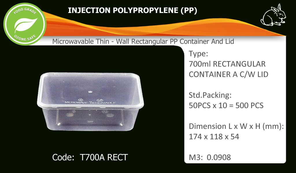 700ml Medium Wall Rect.Cont. c/w LidCode: TH700 RECT
