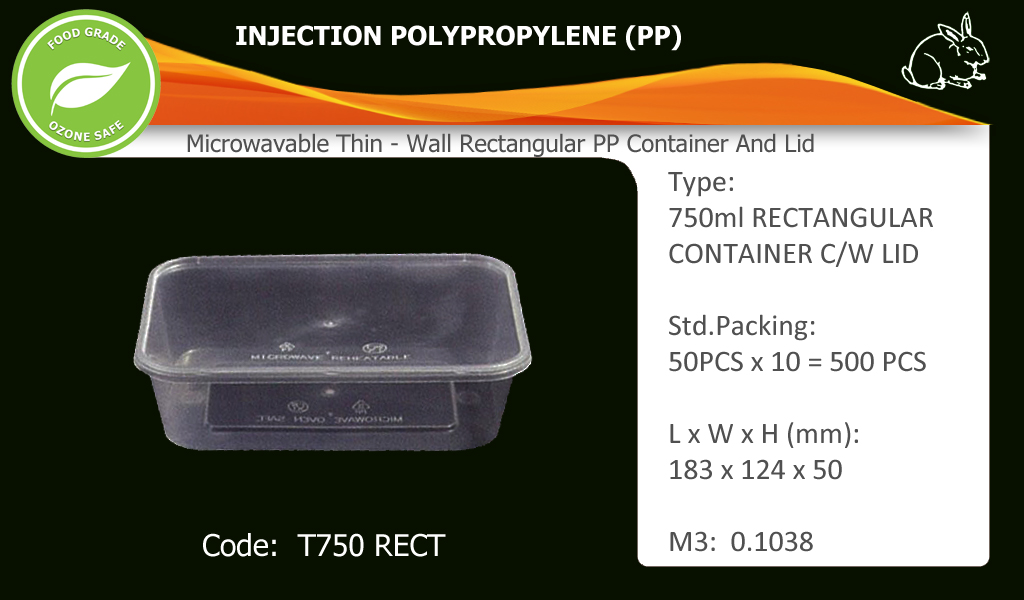750ml Rectangular Container c/w LidCode: T750 RECT