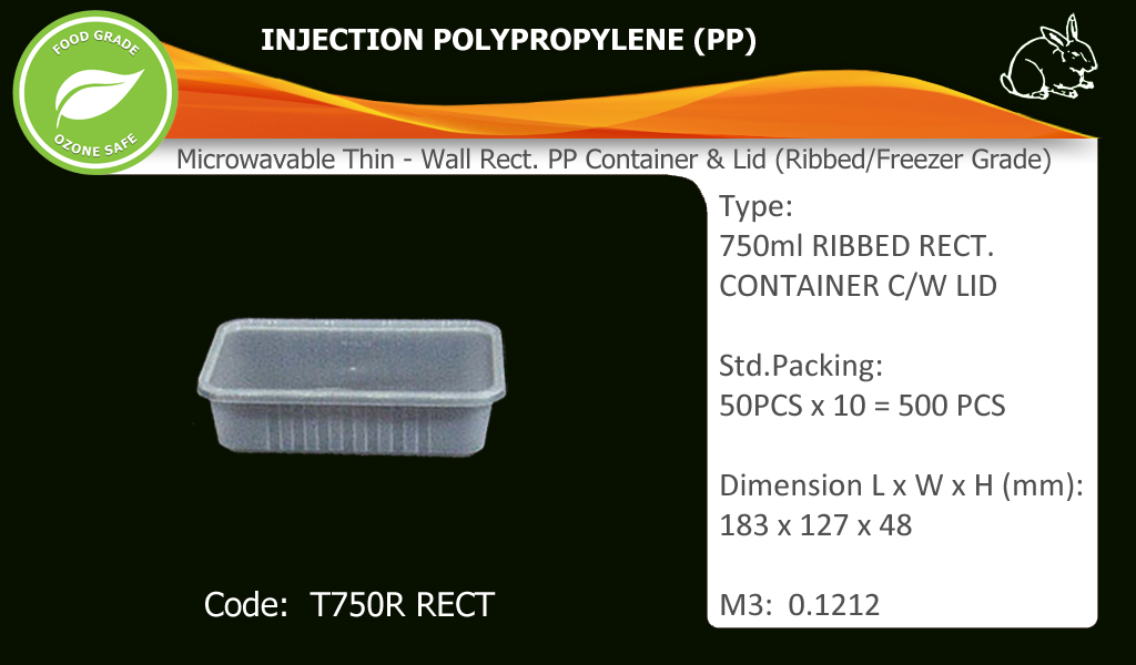 750ml Ribbed Rect. Cont. w LidCode: T750R RECT