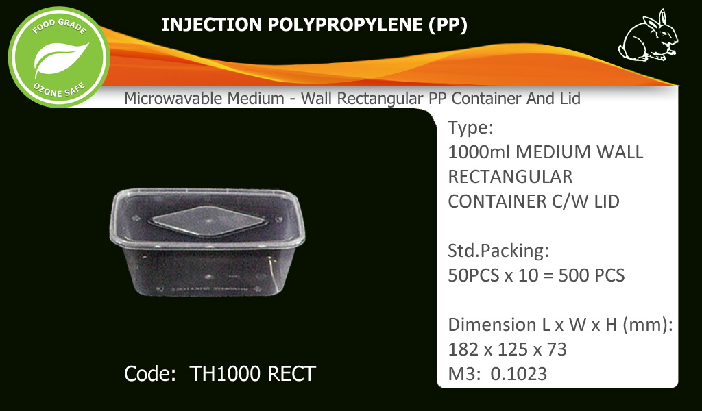 1000ml Medium Wall Rect.Cont. c/w LidCode: TH1000 RECT