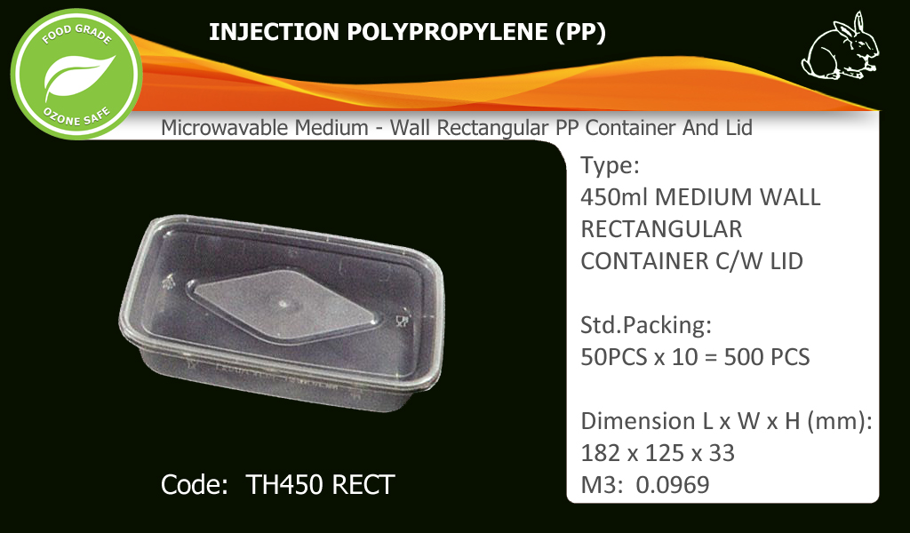 450ml Medium Wall Rect.Cont. c/w LidCode: TH450 RECT