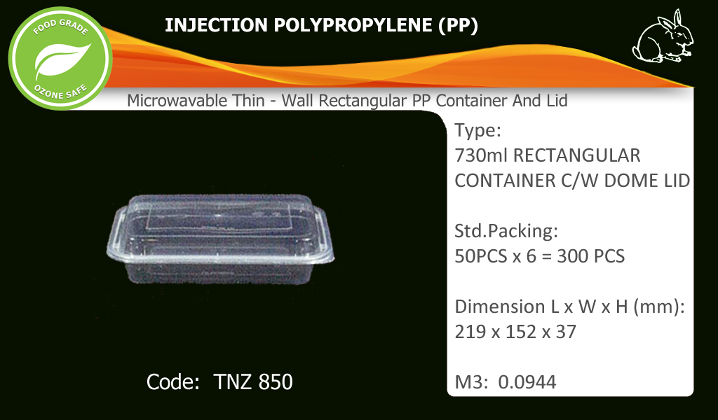 730ml Rectangular Container Dome LidCode: TNZ 850
