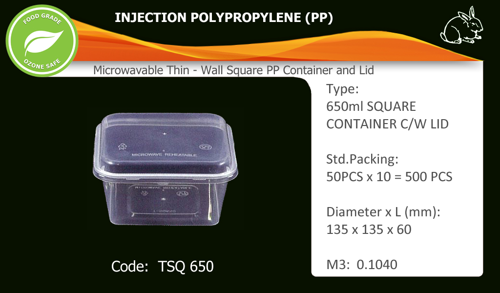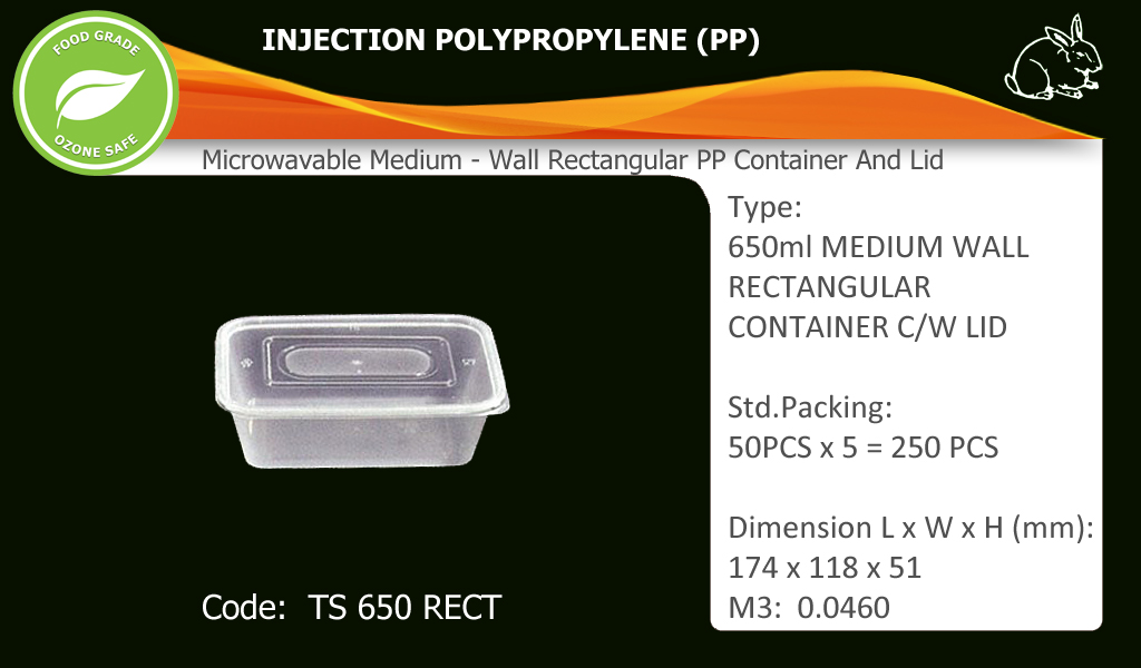 650ml Medium Wall Rect.Cont. c/w LidCode: TS 650 RECT
