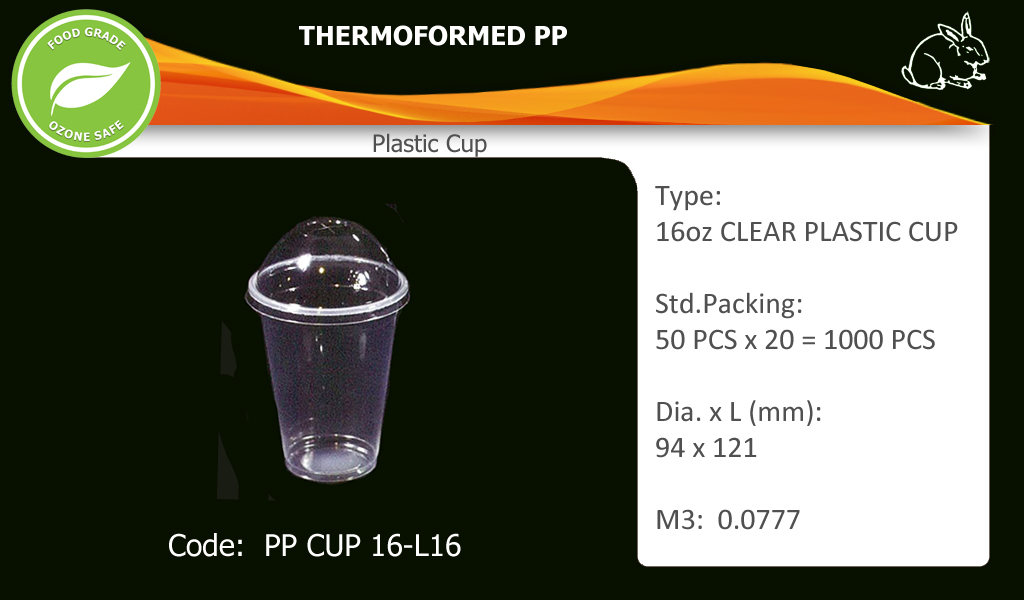 16oz Clear Plastic CupCode: PP CUP 16-L16