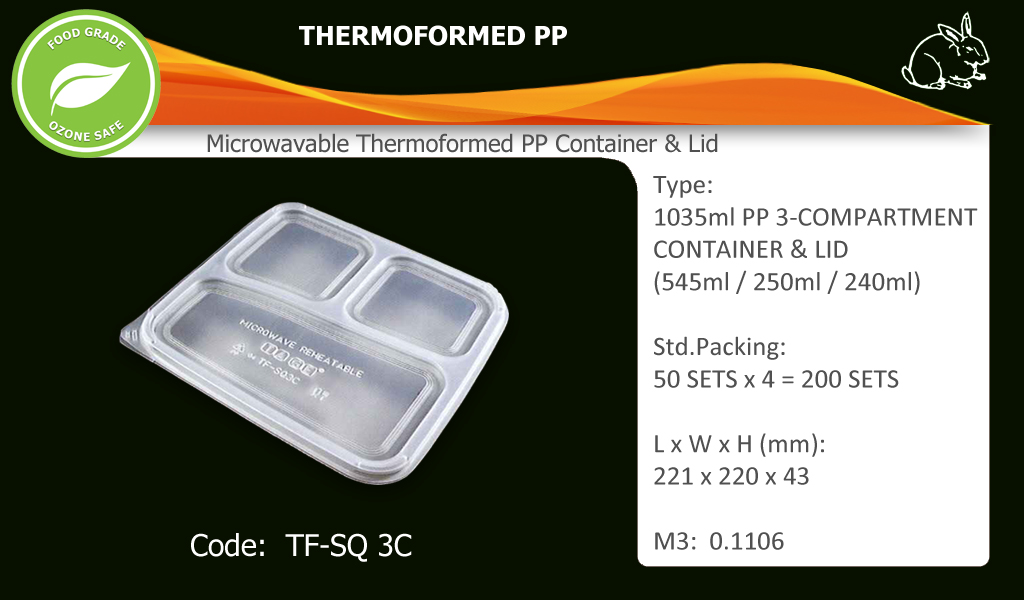 3-Compartment Container c/w LidCode: TF-SQ 3C